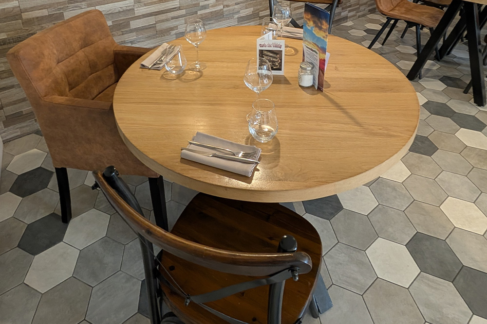 Au centre du village, la façade ne dit rien sur l’endroit mais l’intérieur précise le ton; chez Céline, l’heure est aux traditions, aux plaisirs d’une bourgeoisie villageoise et attachée aux terroirs.