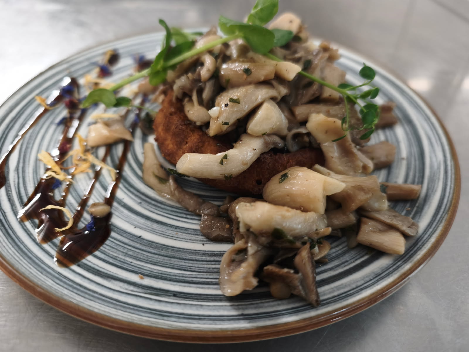 Moelleux de courge butternut maison, tombée de pleurotes de Cussangy